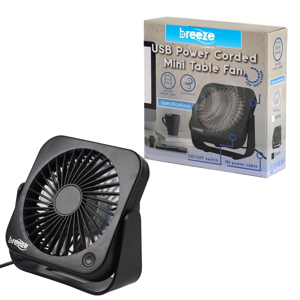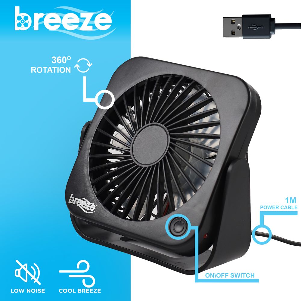BREEZE MINI TABLE FAN USB POWERED BLACK