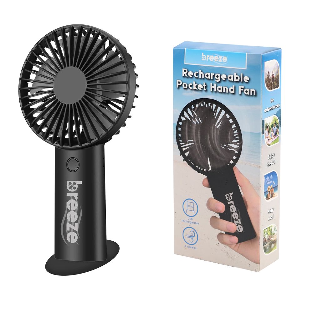800mAh. USB rechargeable. Low noise. 1 button ON/OFF switch. 3 speeds. USB cable included. Attachable base for hands-free use included. Available in 3 colours: White, Pink, Black.