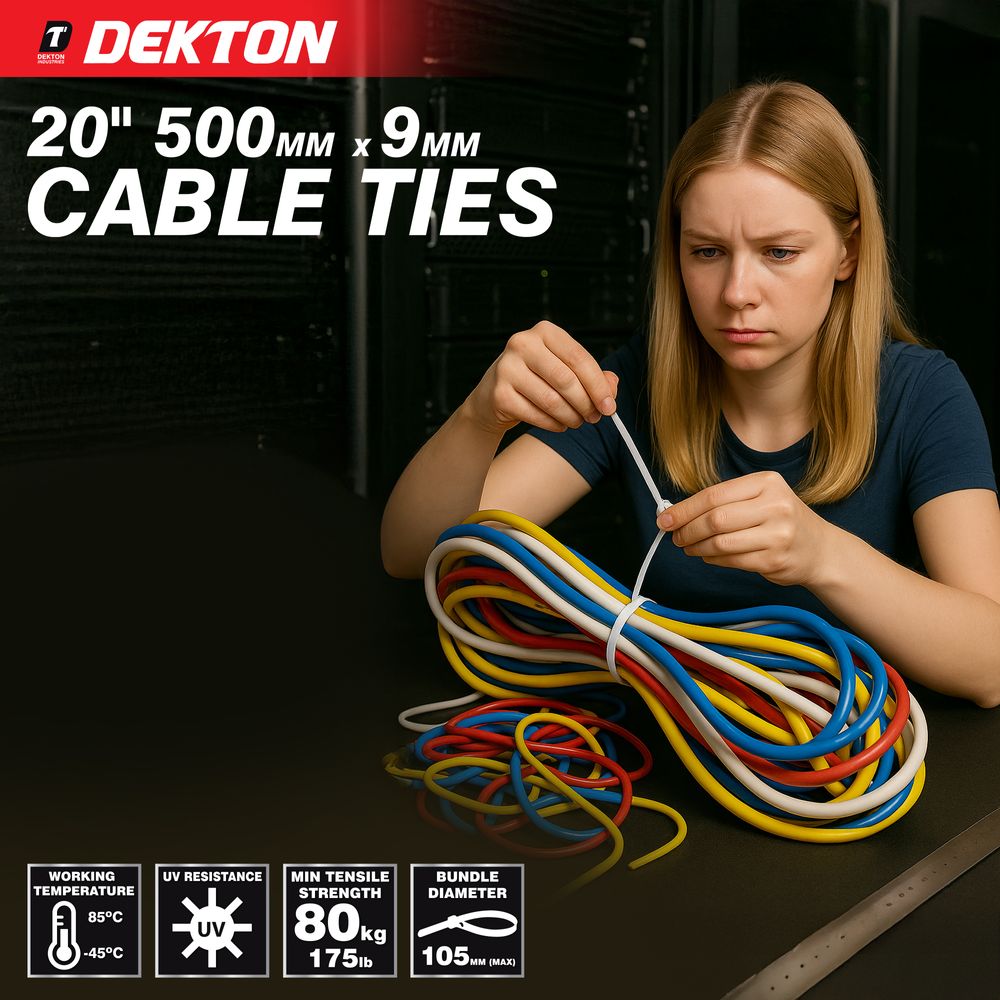 Home / Our Products / DIY / Cable Ties / DEKTON 10 PC 9MM X 500MM WHITE CABLE TIE