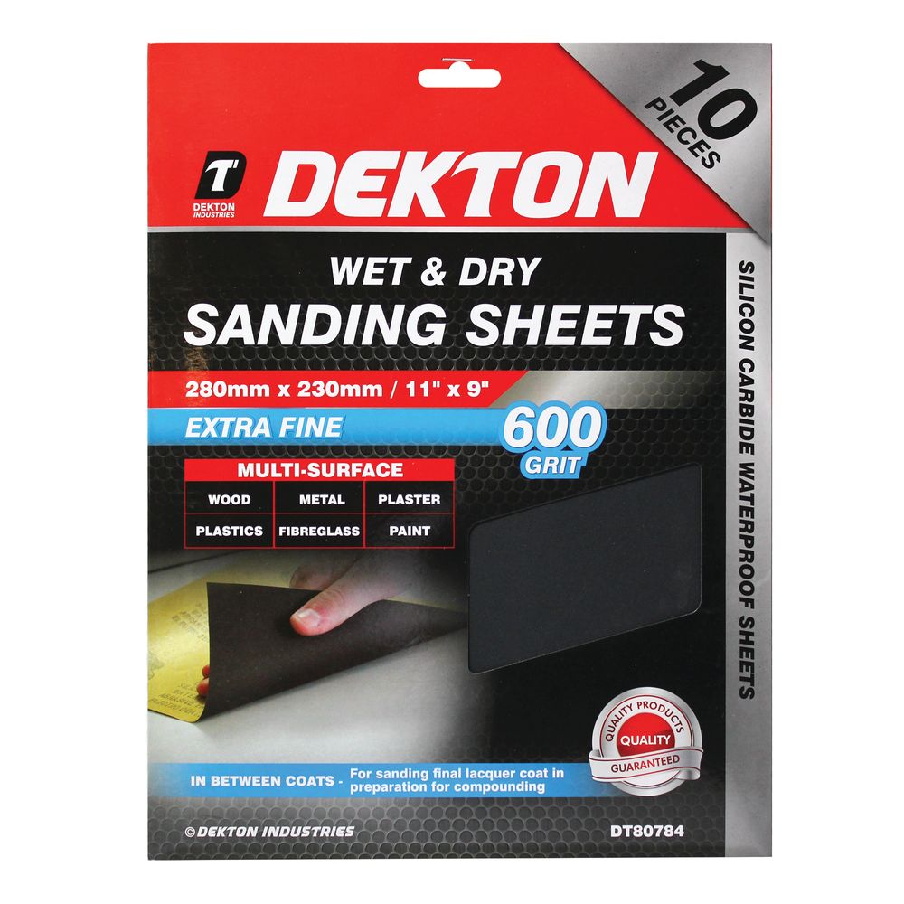 DEKTON 10PC WET AND DRY SANDING SHEETS 280MMX230MM/ EXTRA FINE – 600 GRIT