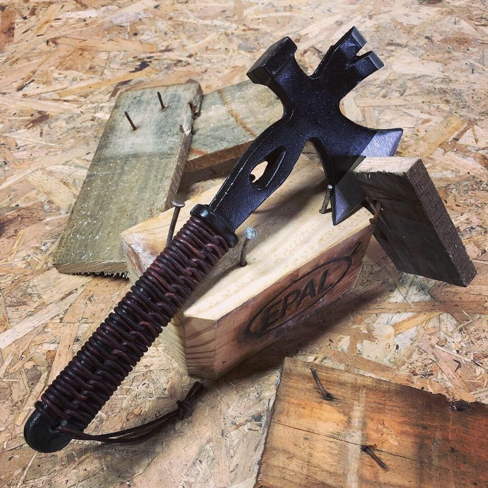 4 in 1 multi tool features a hatchet, hammer, pry bar & nail puller.