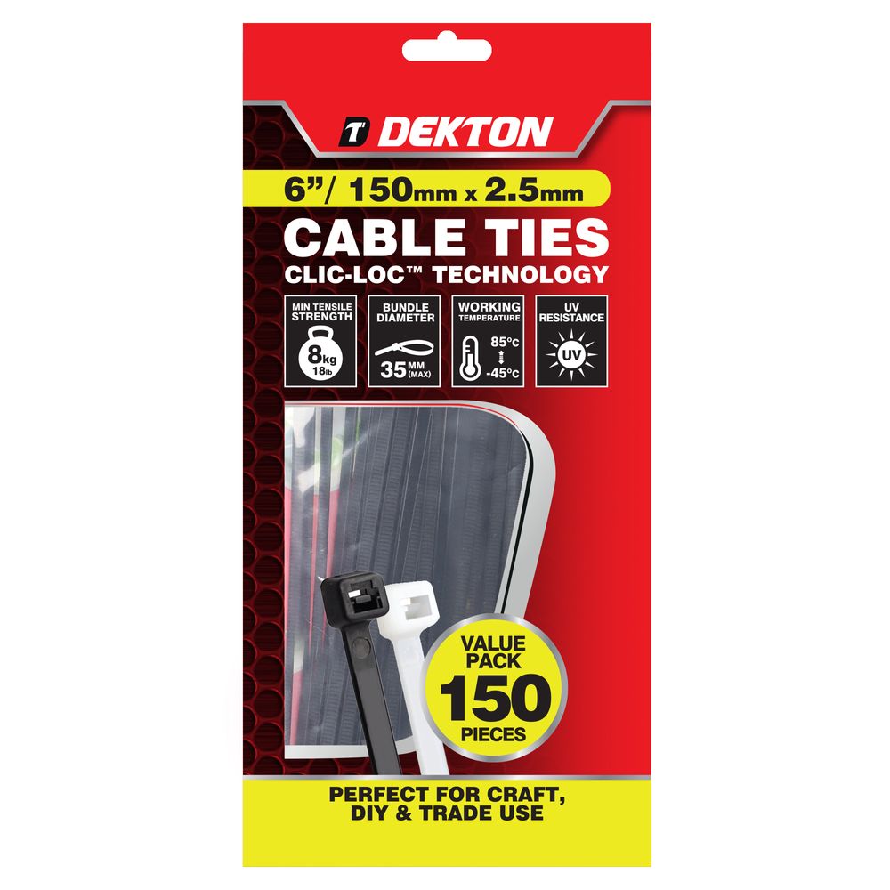 Home / Our Products / DEKTON 150 PCS 2.5MM x 150MM BLACK CABLE TIES