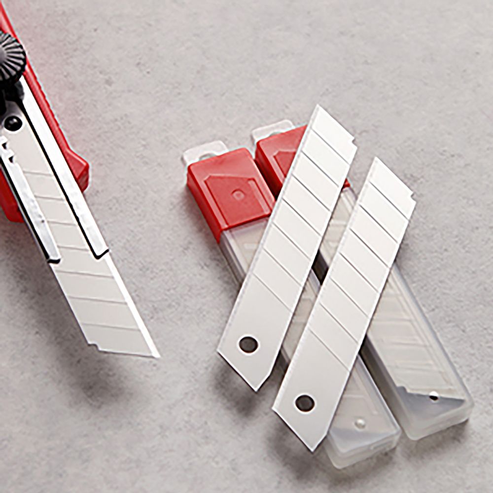 Ideal for cutting card, paper, leather, carpet and more. Lightweight and strong. Snap of blades. 18mm blades.