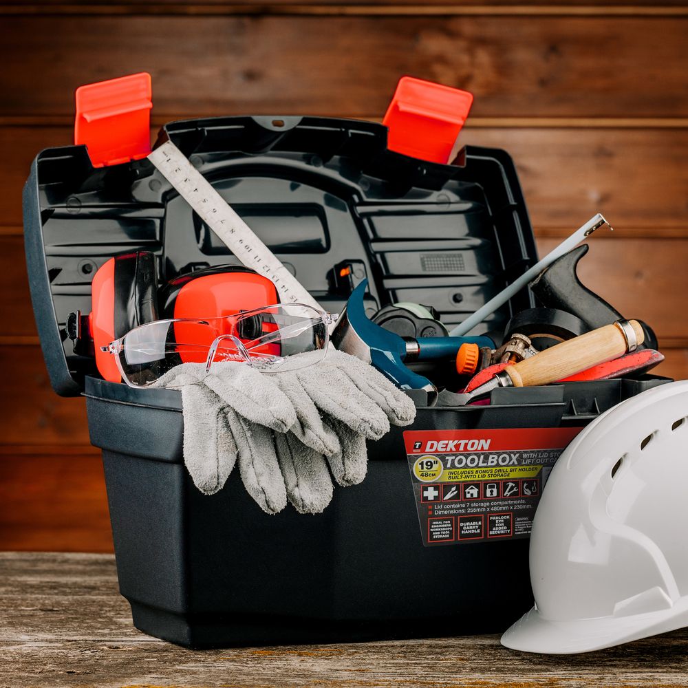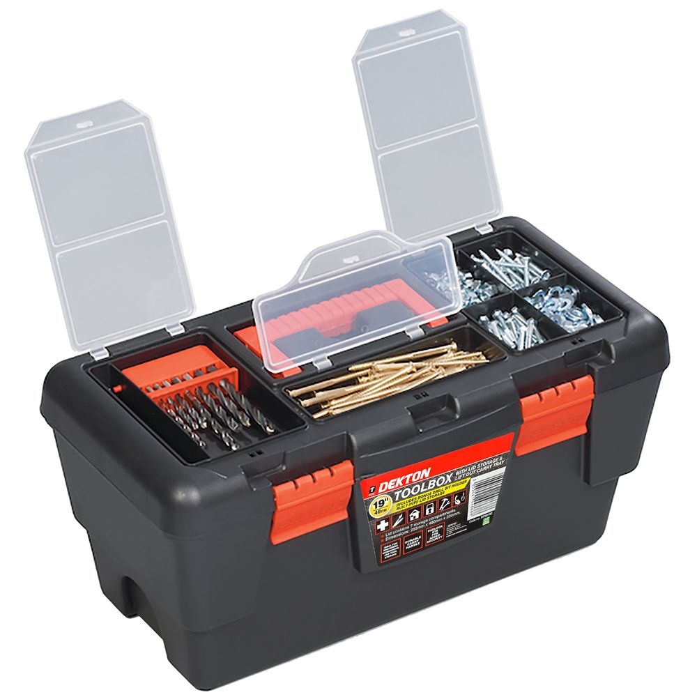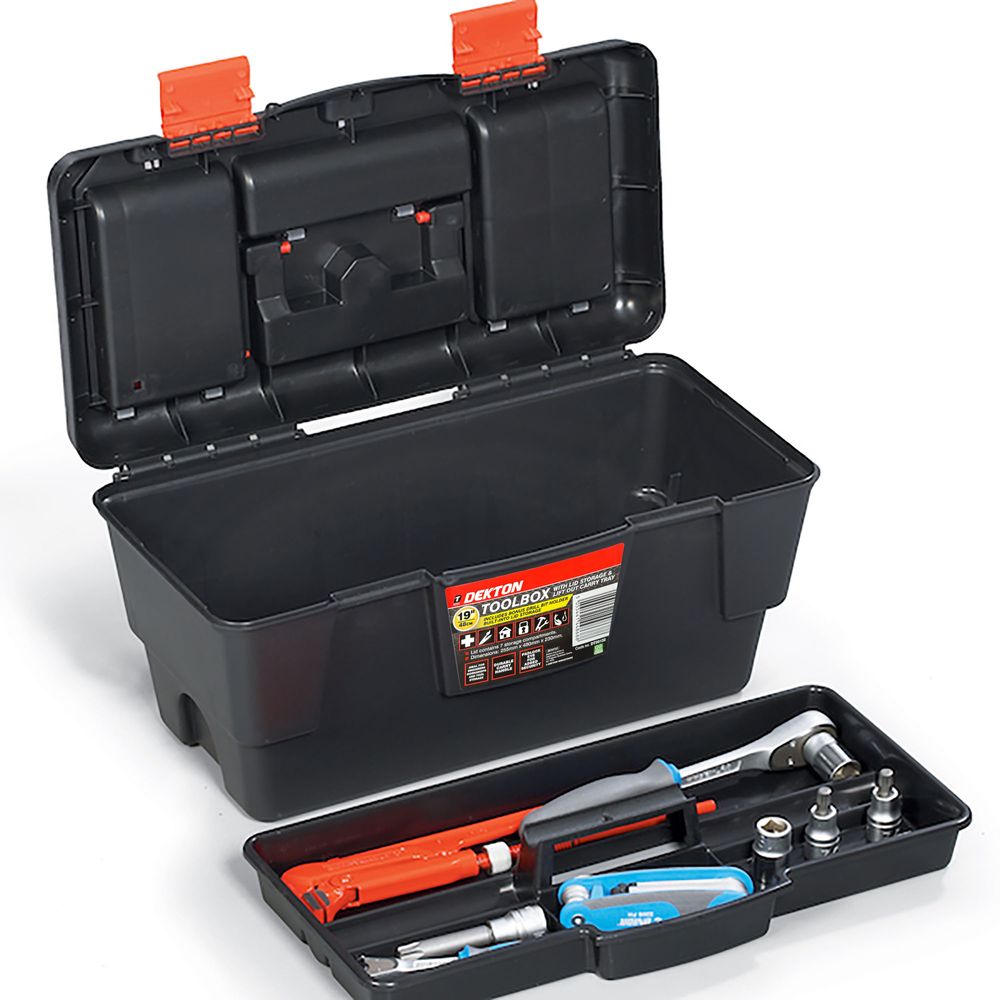 DEKTON 19” TOOLBOX WITH LID STORAGE & LIFT OUT CARRY TRAY INCLUDES BONUS DRILL