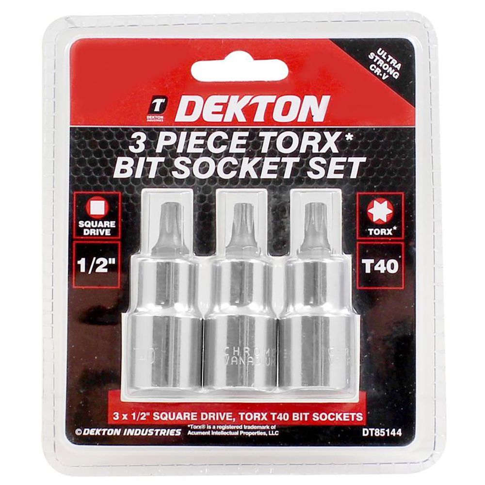 DEKTON 3 PIECE TORX* BIT SET T40 1/2″ DRIVE
