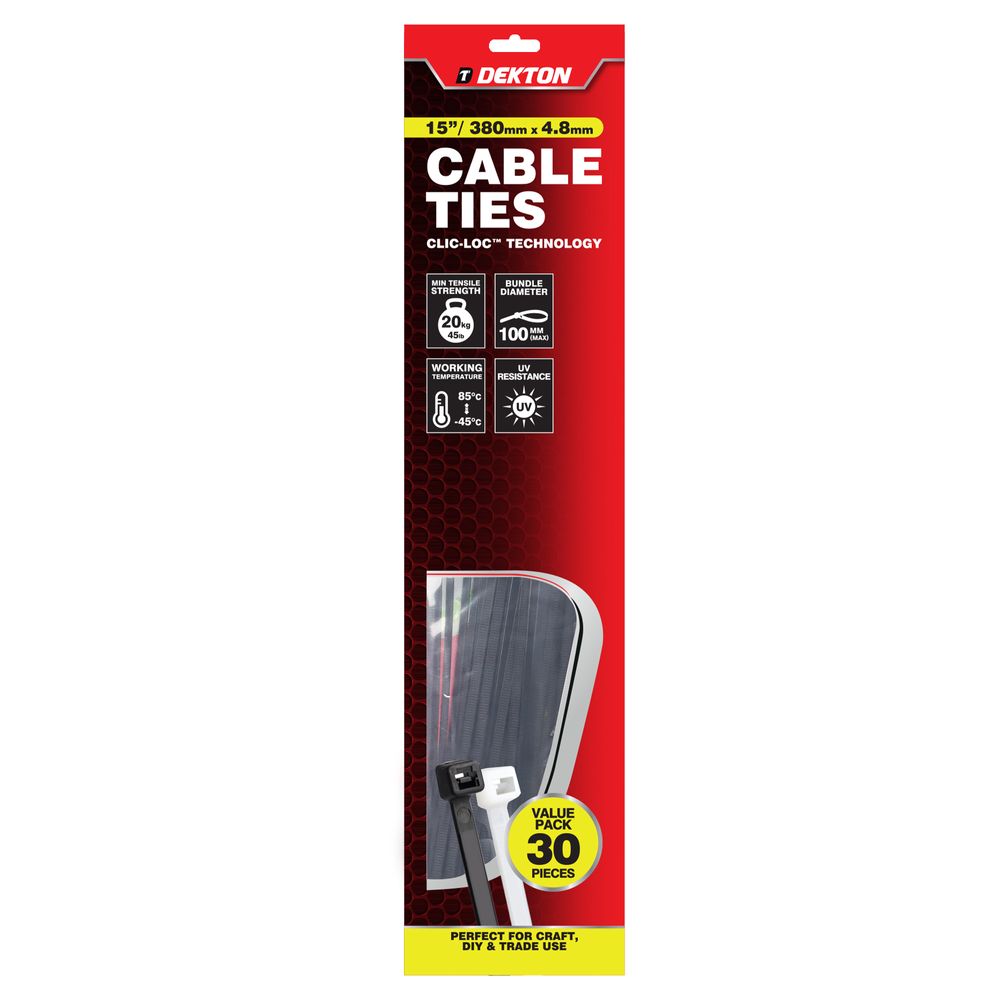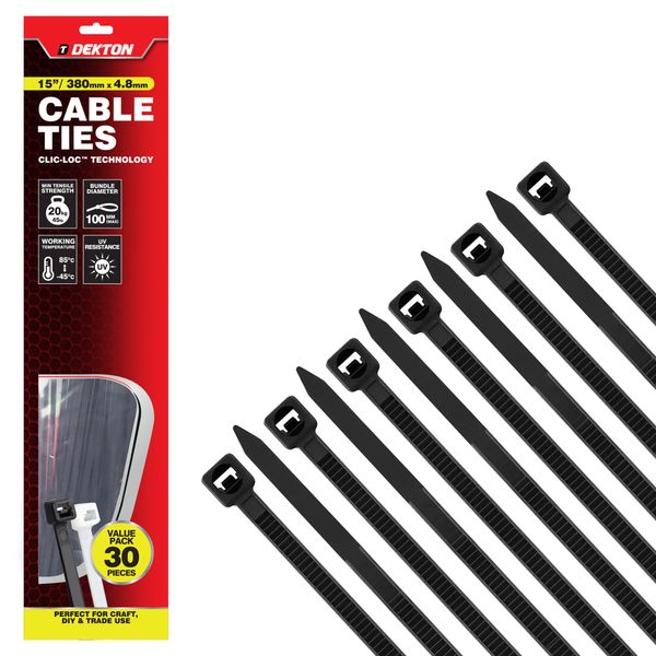 Home / Our Products / DEKTON 30PCS 4.8MM x 380MM BLACK CABLE TIES