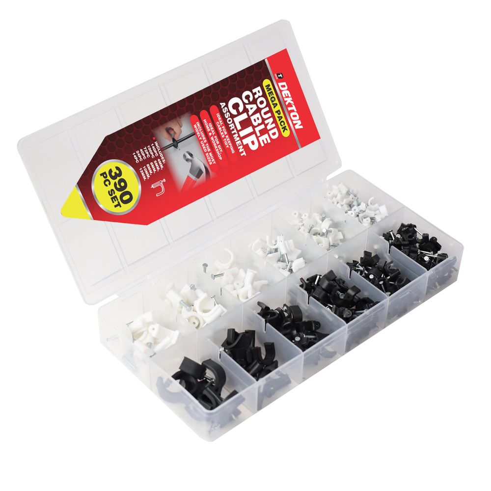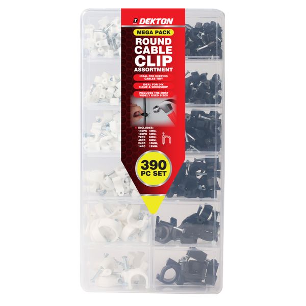 DEKTON 390 PCS ROUND CABLE CLIP ASSORTMENT