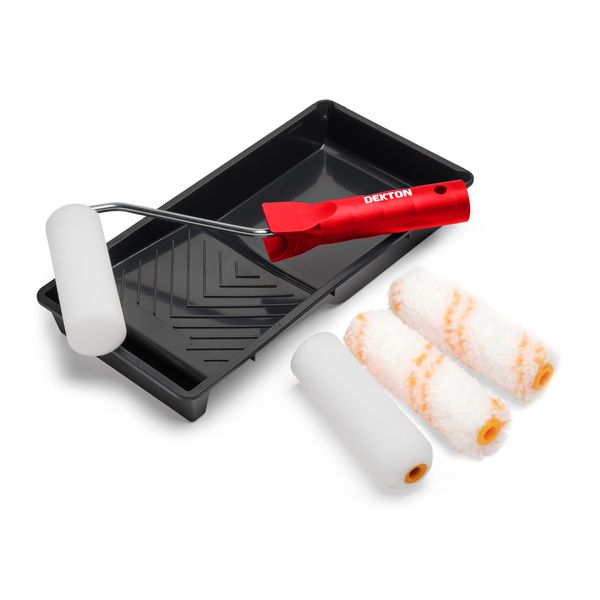 It includes 2 x mini foam roller sleeves, 2 x mini woven roller sleeves, 4″ frame, Tray.