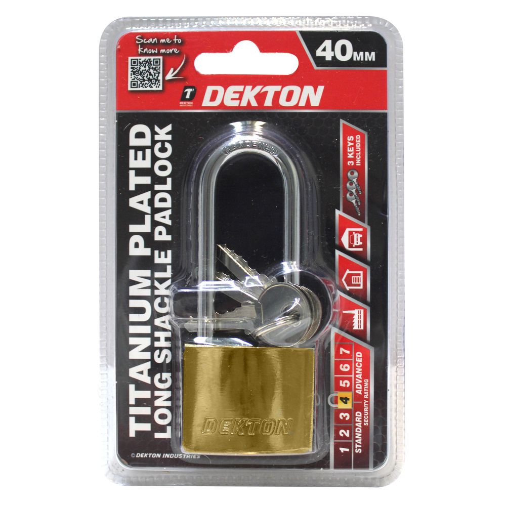 Home / Our Products / DIY / Padlocks / DEKTON 40MM LONG SHACKLE TITANIUM PLATED IRON PADLOCK