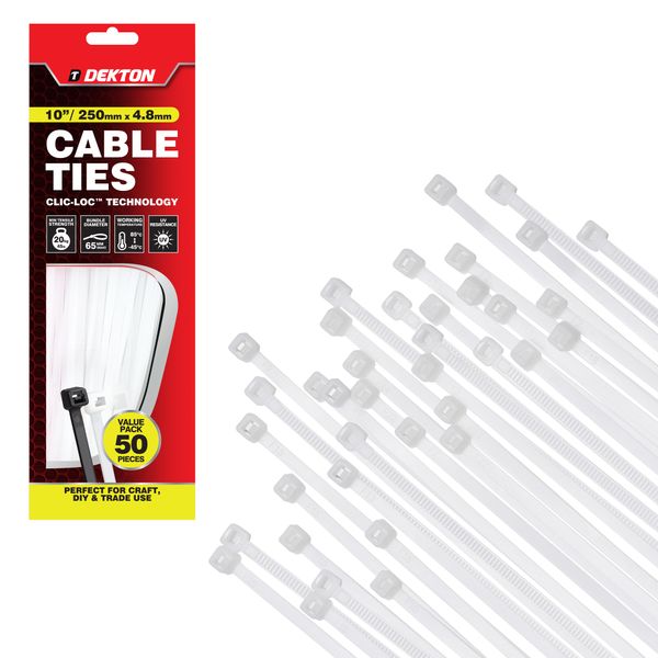 Home / Our Products / DEKTON 40PCS 4.8MM x 300MM WHITE CABLE TIES