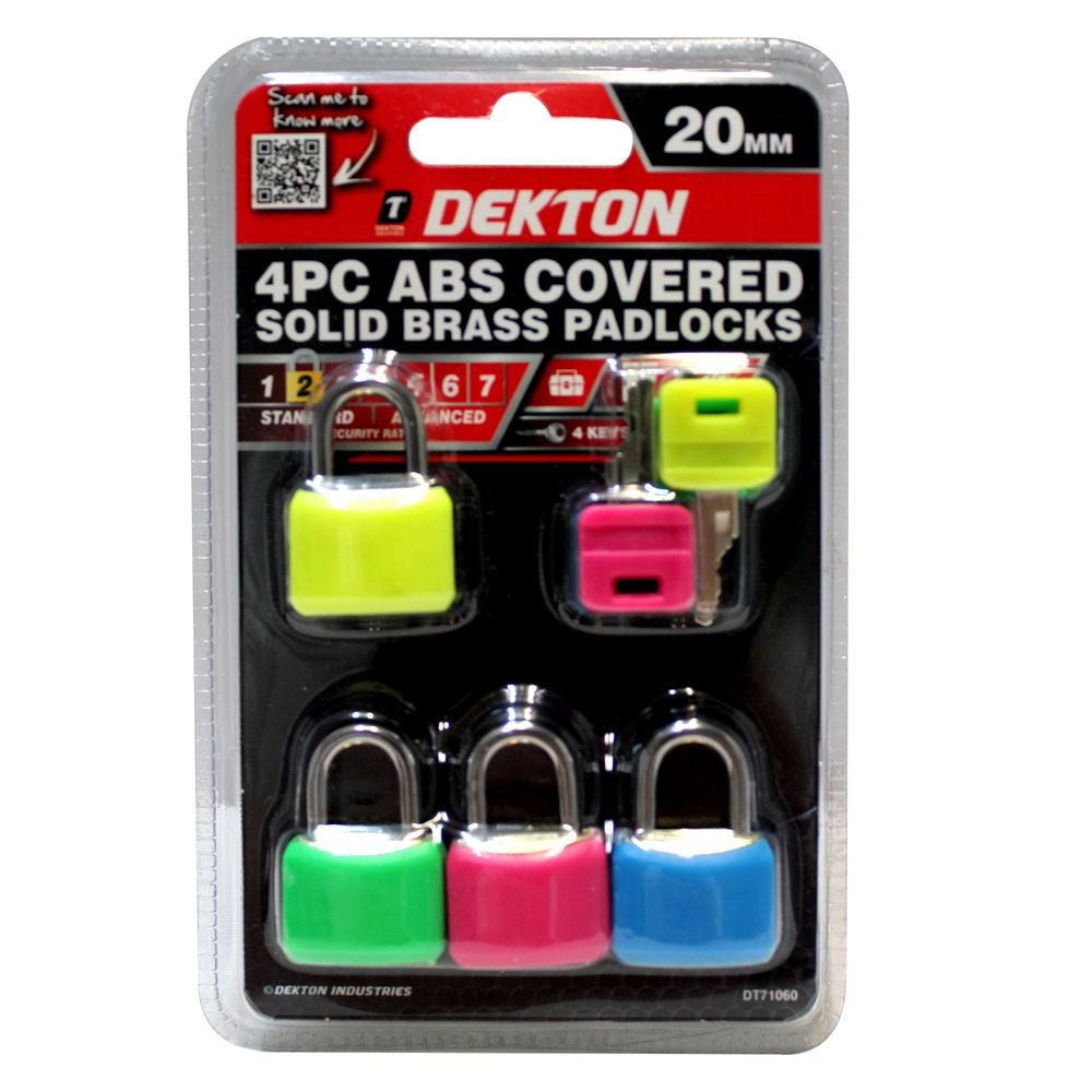 Home / Our Products / DIY / Padlocks / DEKTON 4PC SET 20MM ABS COVERED SOLID BRASS PADLOCKS