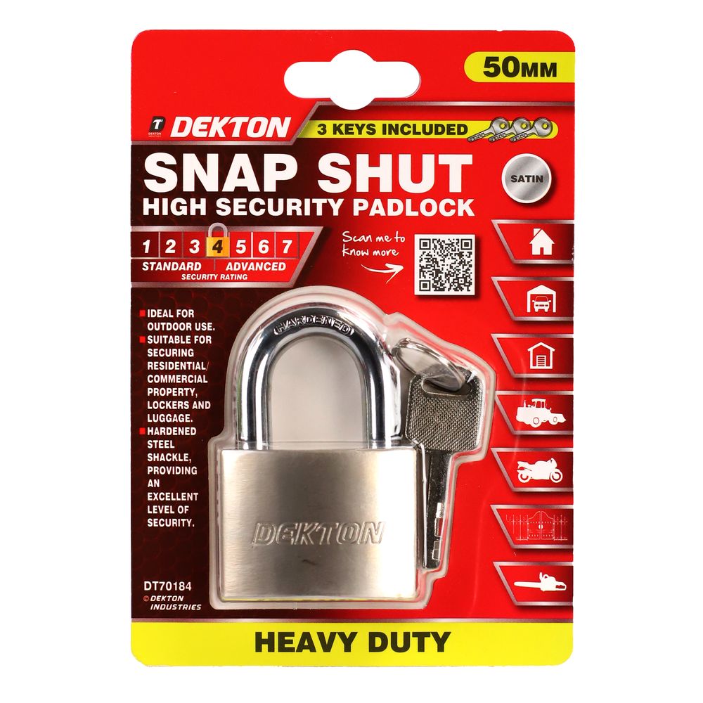 DEKTON 50MM SATIN PADLOCK WITH 3 SECURITY KEYS
