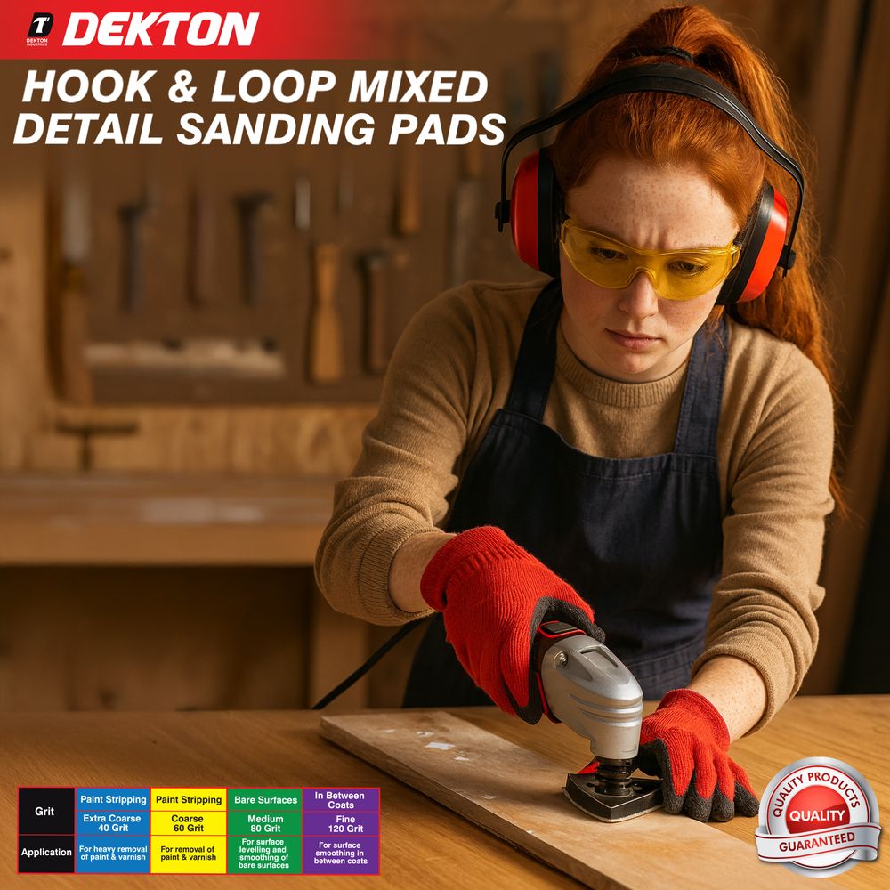 DEKTON 5PC HOOK AND LOOP DETAIL SANDING PADS 93MMX93MM/ FINE – 120 GRIT