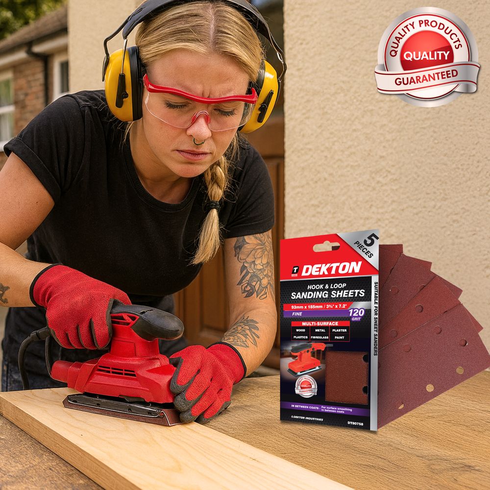 DEKTON 5PC HOOK AND LOOP SANDING SHEETS 93MMX185MM/ FINE – 120 GRIT