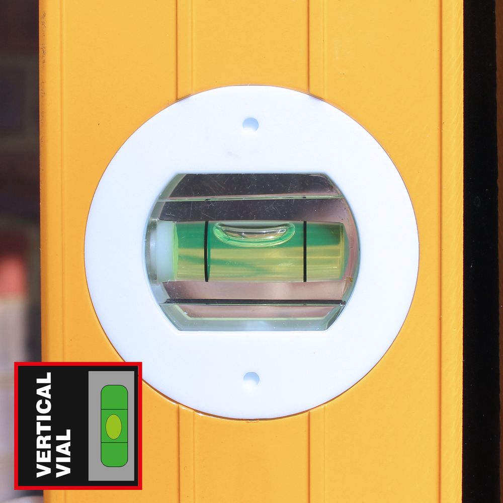Milled edges for added accuracy. 3 Vials (180° and 90°). Ridged body for extra strength.