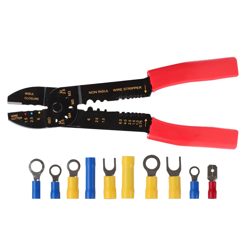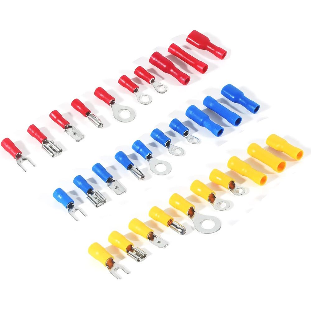 Ideal for DIY, home and workshop. The set includes Ring connectors, Butt connectors, spade connectors, fork terminals