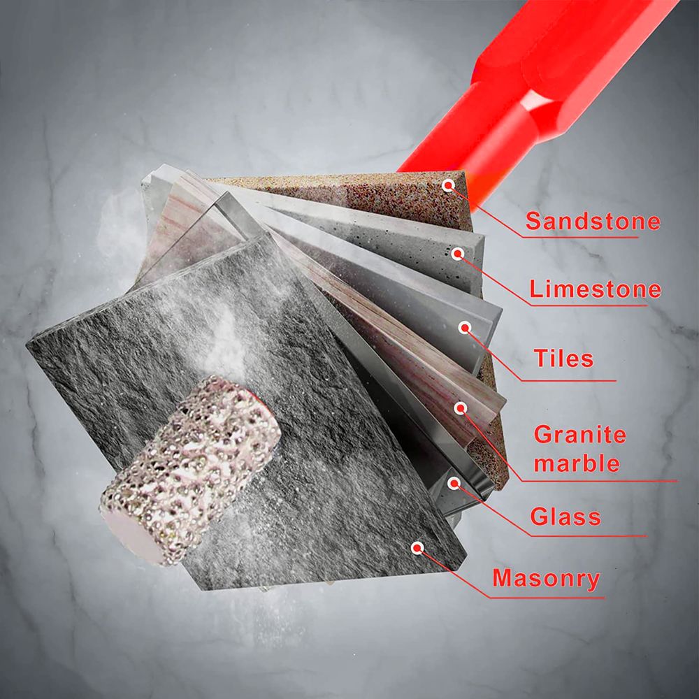Diamond drill bit for dry cutting ceramic, porcelain (Grade 5) and stone.