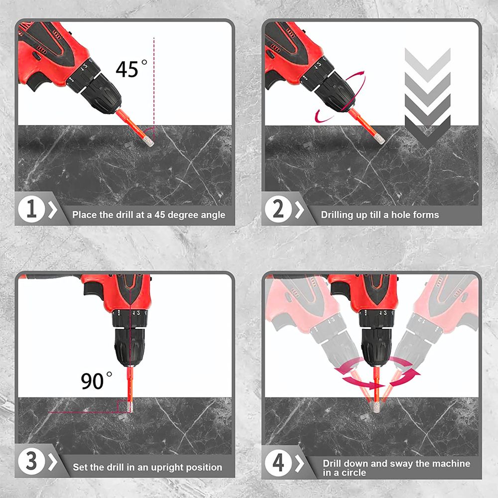 Diamond drill bit for dry cutting ceramic, porcelain (Grade 5) and stone.