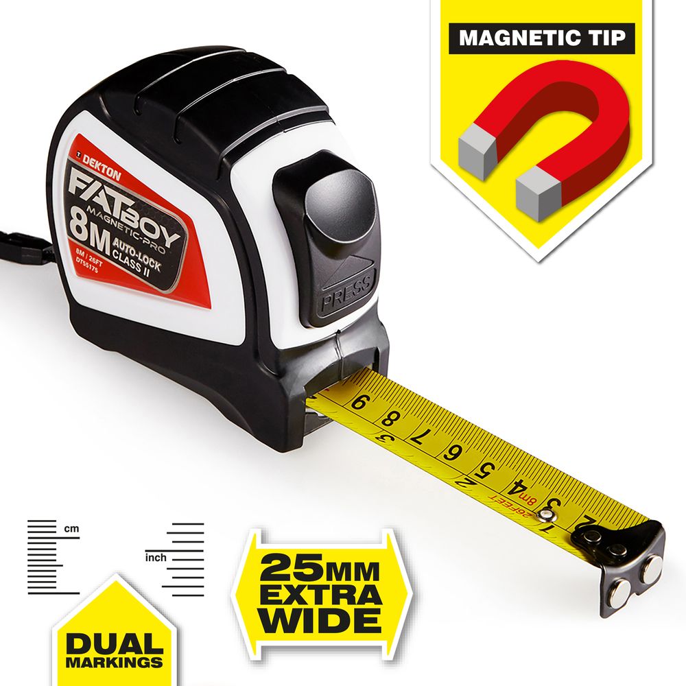 DEKTON FATBOY MAGNET TAPE MEASURE 8M X 25MM