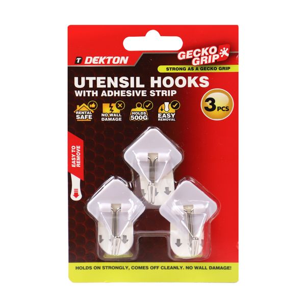 DEKTON GECKOGRIP UTENSIL HOOKS 3PC WHITE