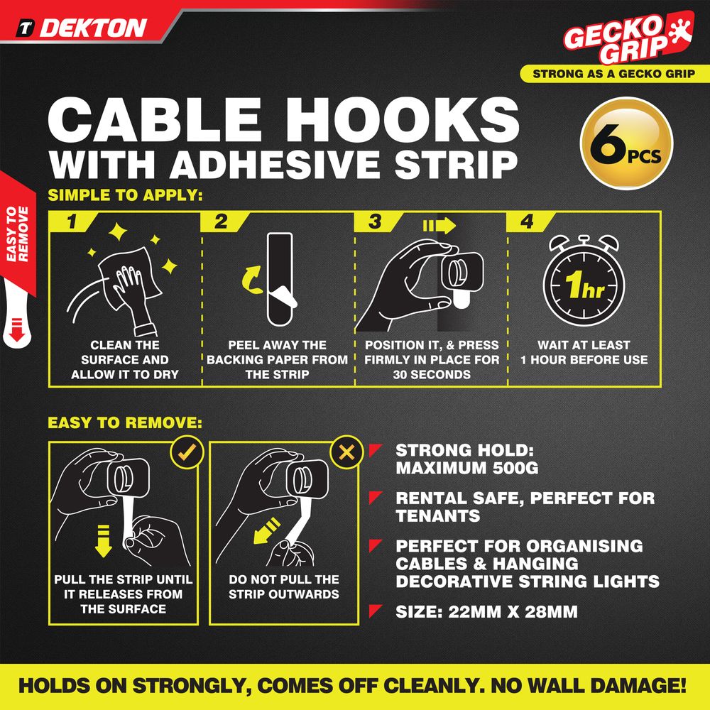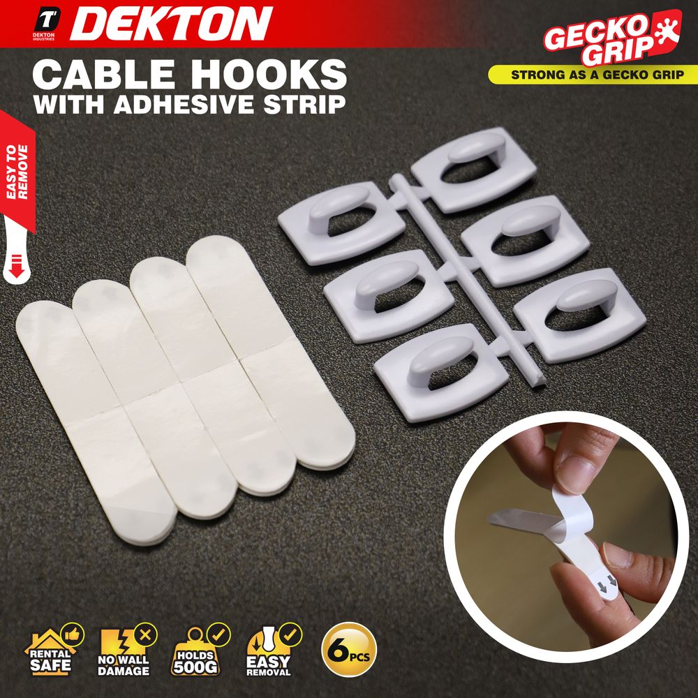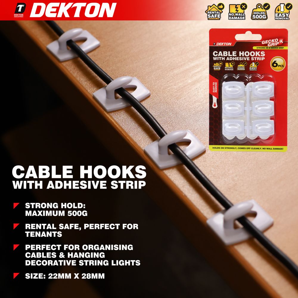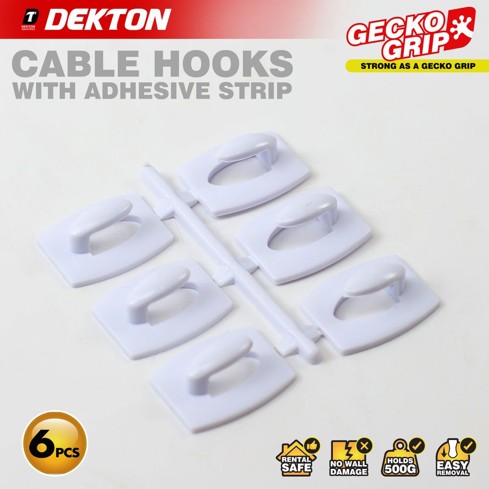 DEKTON GECKOGRIP WHITE CABLE HOOKS 6PC
