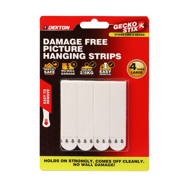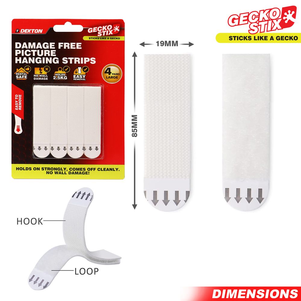 DEKTON GECKOSTIX DAMAGE FREE PICTURE HANGING STRIPS 4 PAIRS LARGE
