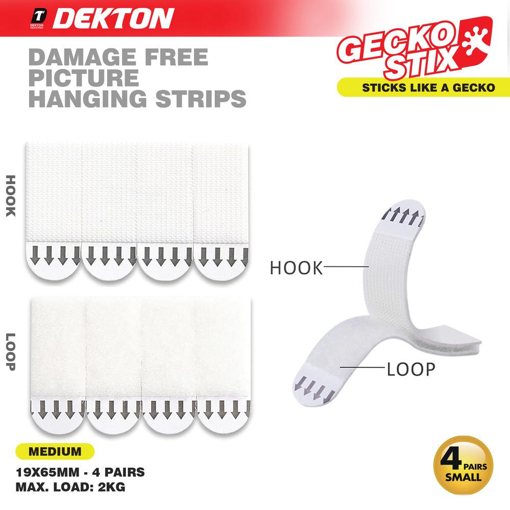 DEKTON GECKOSTIX DAMAGE FREE PICTURE HANGING STRIPS 4 PAIRS MEDIUM