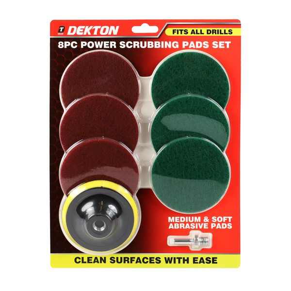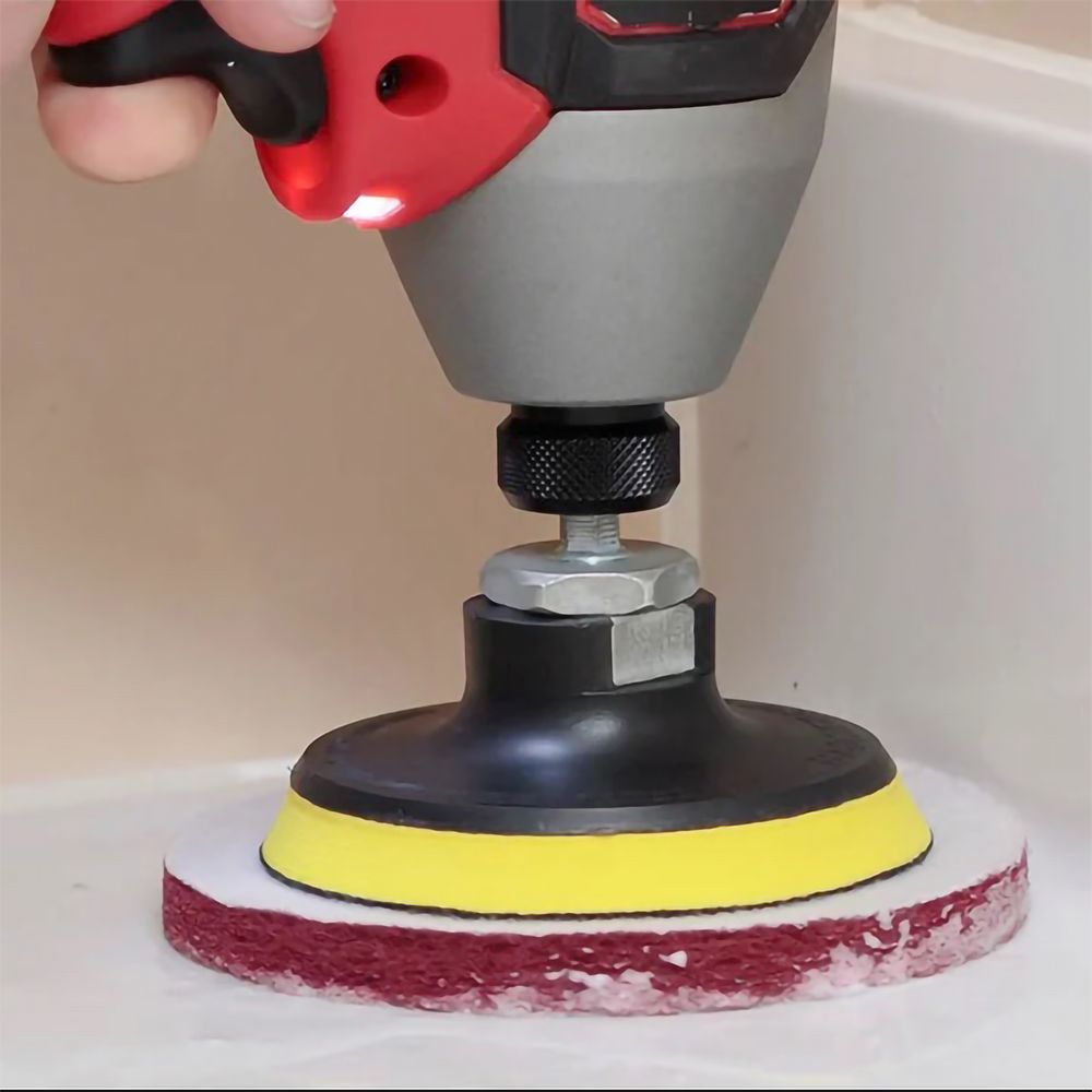 The scrubbing pads are backed with a layer of fleece fabric, so they can be easily attached to the sanding disc, and will not become loose when in use. More efficient when cleaning large flat surfaces such as wall tiles, floors or glass doors. Two different stiffnesses: The soft red pads are abrasive enough to clean your bathroom, or kitchen floor very efficiently. For a more intense clean, use the medium abrasive green pads. Features 1/4 inch quick change shaft that fits any drill. Wear resistant and durable – easy to rinse clean, ready for next use. Reducing your cleaning time. Pads attach to sanding disc with hook and loop system.