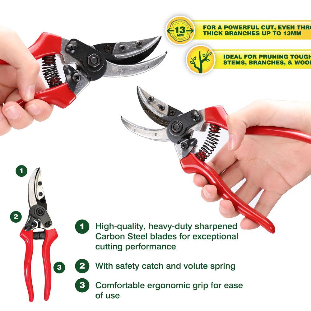 Ideal for pruning tough fibrous stems, branches, & woody twigs
