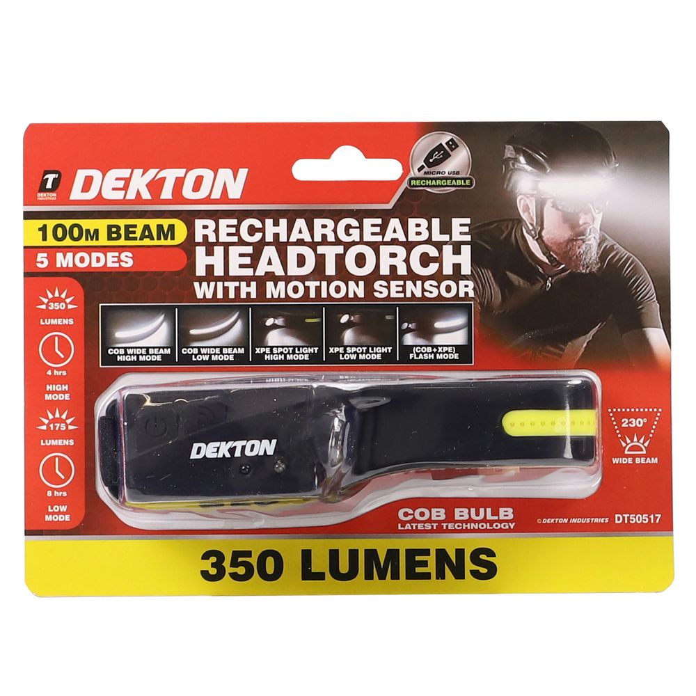 DEKTON PRO LIGHT LED RECHARGEABLE HEAD TORCH with motion sensor