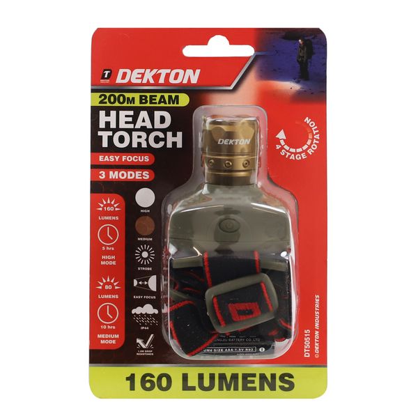 DEKTON PRO LIGHT XA160 SEARCHER HEAD TORCH – 160 LUMENS / 200M DISTANCE
