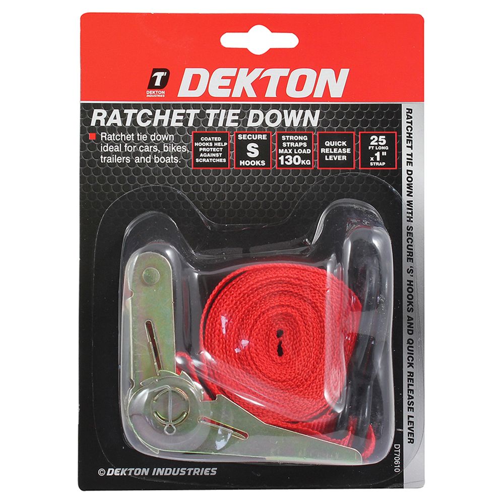 Ratchet tie down ideal for cars, bikes, trailers and boats.