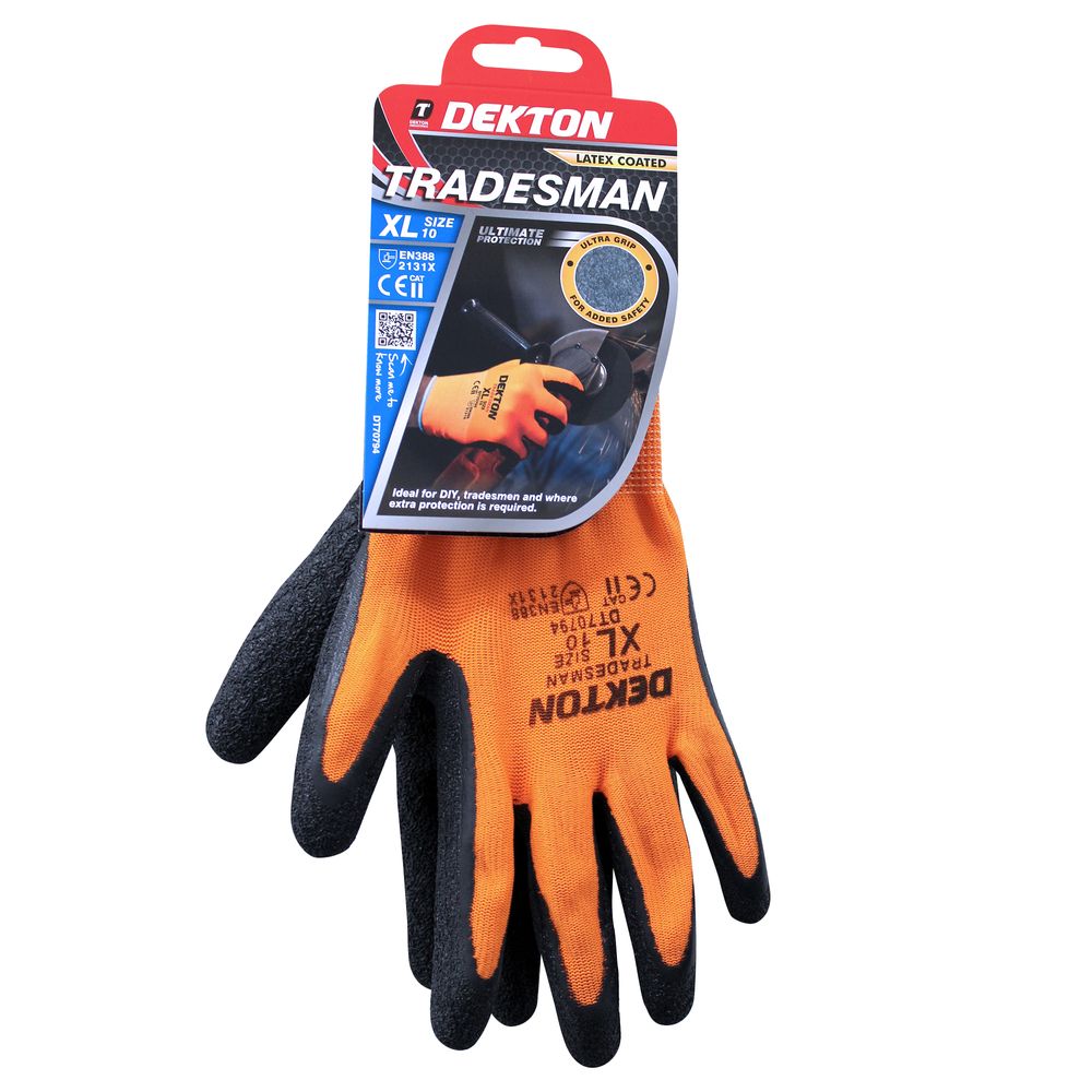 DEKTON SIZE 10/XL TRADESMAN LATEX COATED WORKING GLOVES