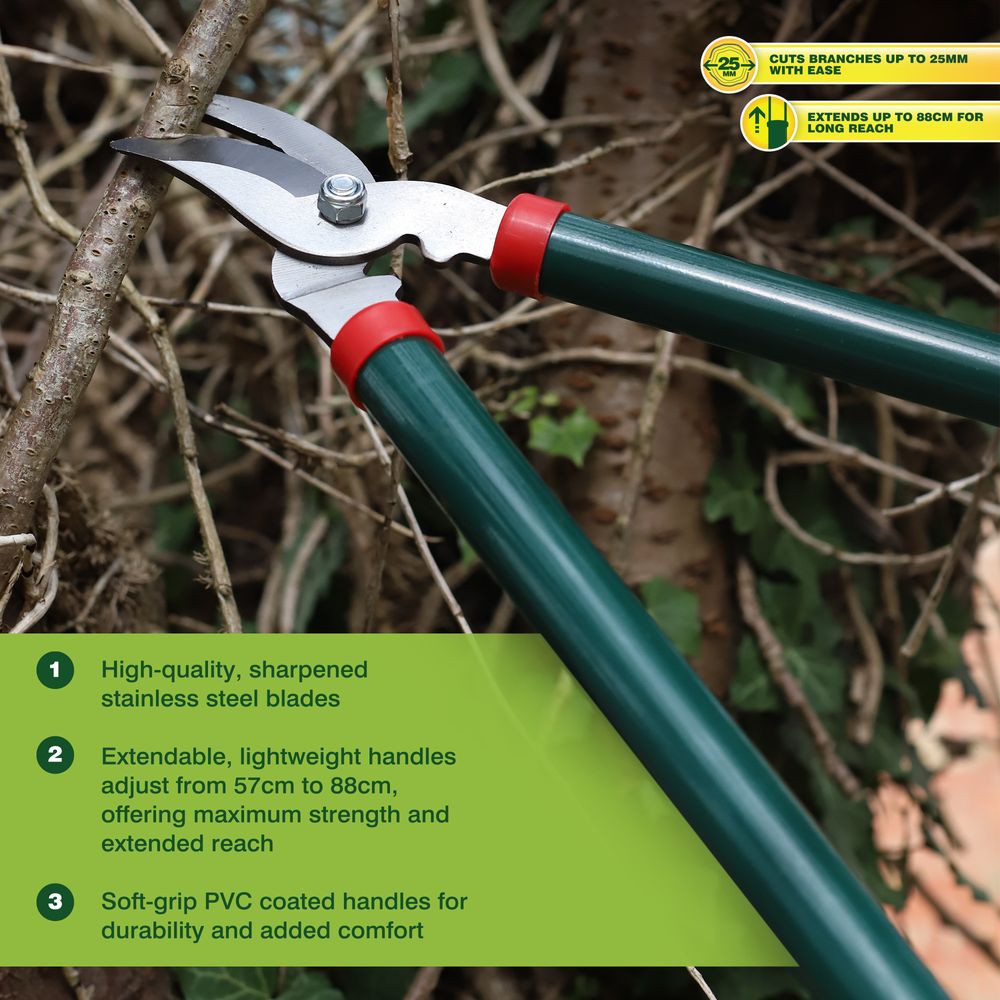 Extendable, lightweight handles adjust from 57cm to 88cm, offering maximum strength and extended reach