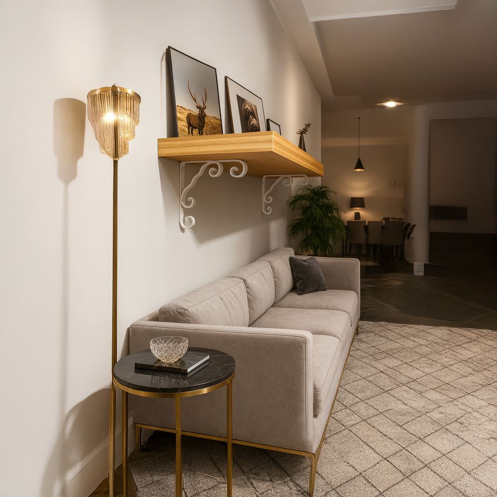 Home / Our Products / DEKTON TWISTED WROUGHT IRON SCROLL SHELF BRACKET, POWDER COATED, SIZE: 6″X6″