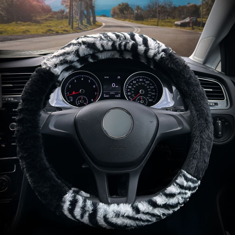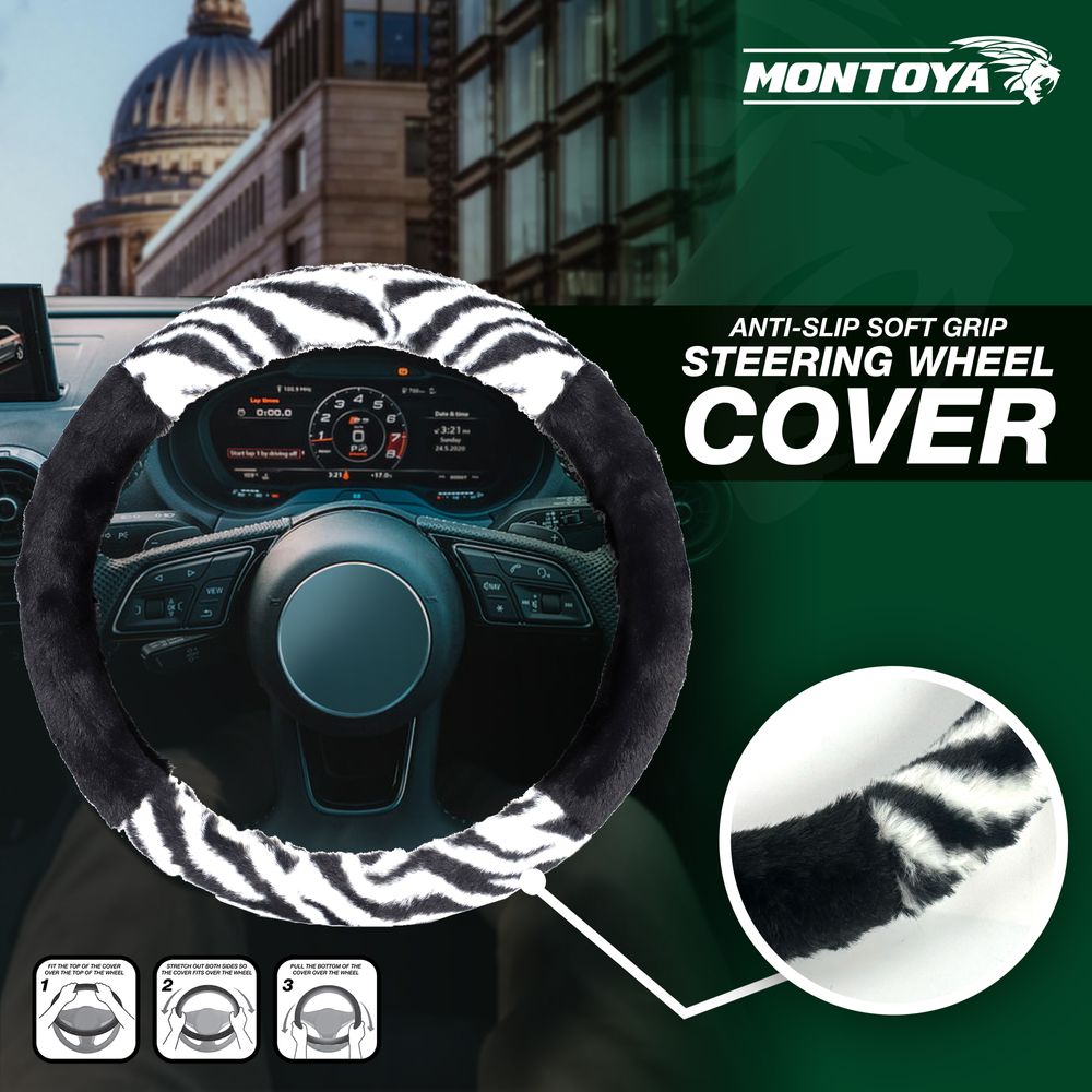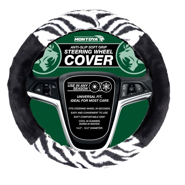 MONTOYA  FURRY ZEBRA PRINT STEERING WHEEL COVER